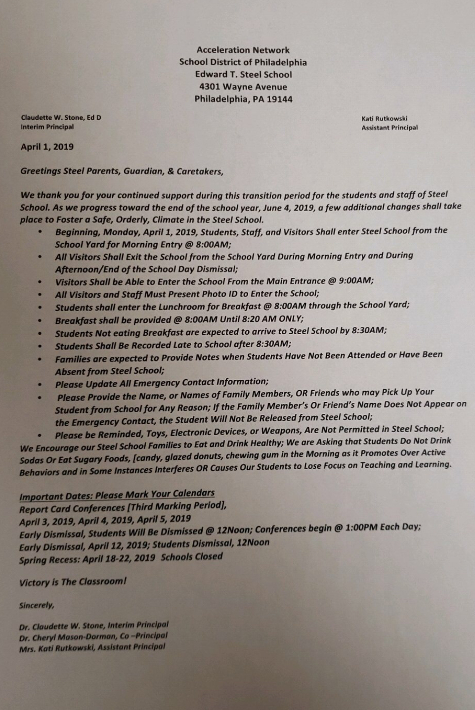 April 1 family letter